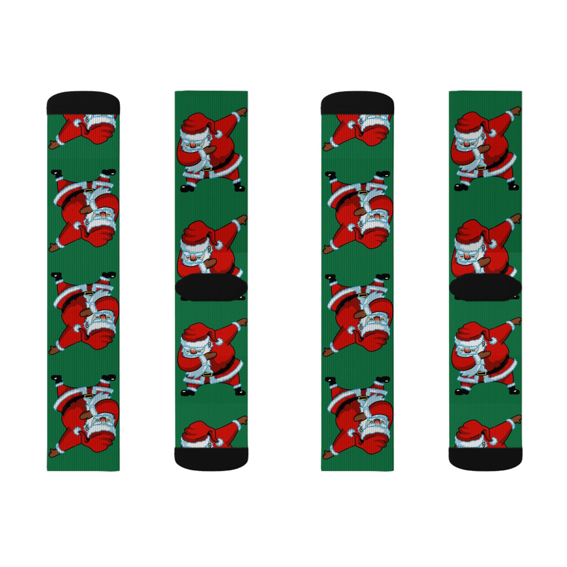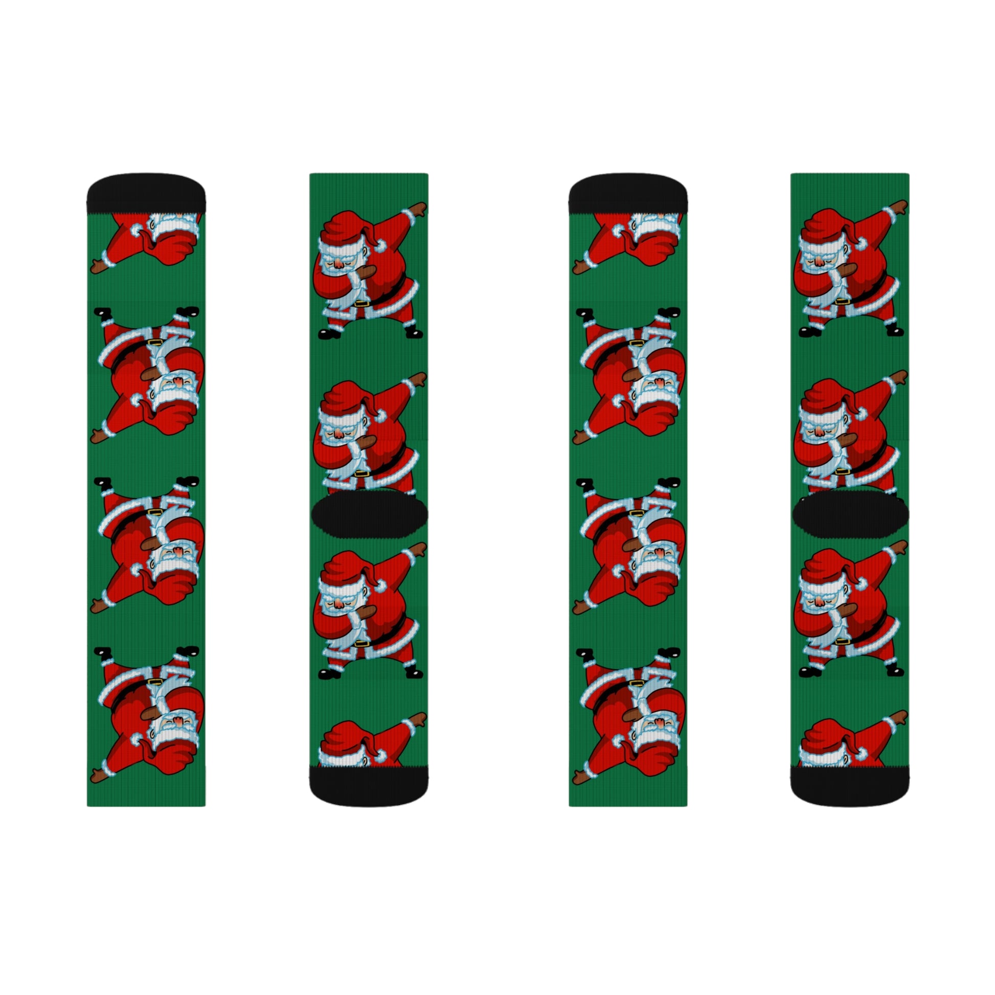 Show your holiday spirit with our dabbing Santa socks - a subtle accent to complement an office look or an eye-catching statement for an extravagant outfit.